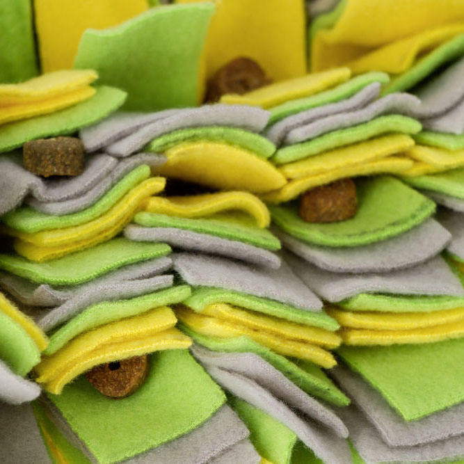 Toujours dans l’objectif de rendre ludique la nourriture, les tapis de fouille sont fait pour y cacher de la nourriture sèche. Ils existent dans toutes les tailles et dans toutes les formes.