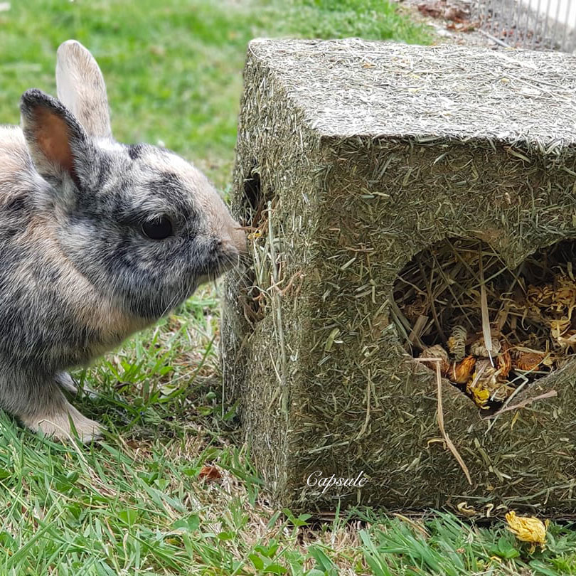 Nous savons tous que les lapins vivent, à l’état naturel, grâce à des réseaux de terriers. Il est donc dans leur instinct de parfois aimer s’abriter pour faire une sieste ou manger tranquillement une friandise.