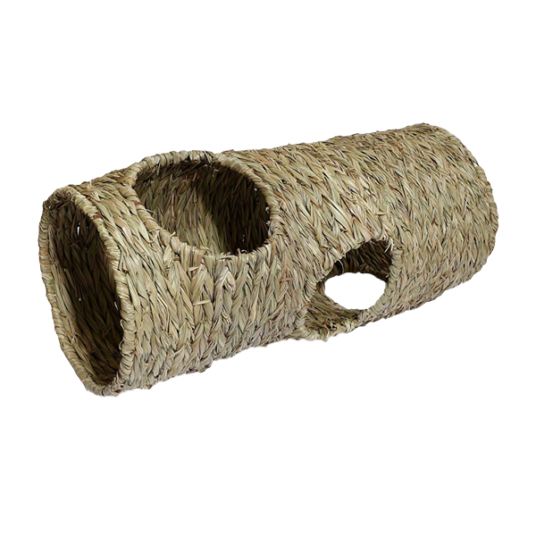 Le tunnel en hyacinth est rigide, tandis que le tunnel en seagrass est plutôt souple. Ces tunnels existent aussi en taille L et sont adaptés aux petits animaux comme les chons ou les octodons. Pour les lapins vous pouvez aussi vous en servir pour les remplir de foin et rendre l’alimentation ludique.