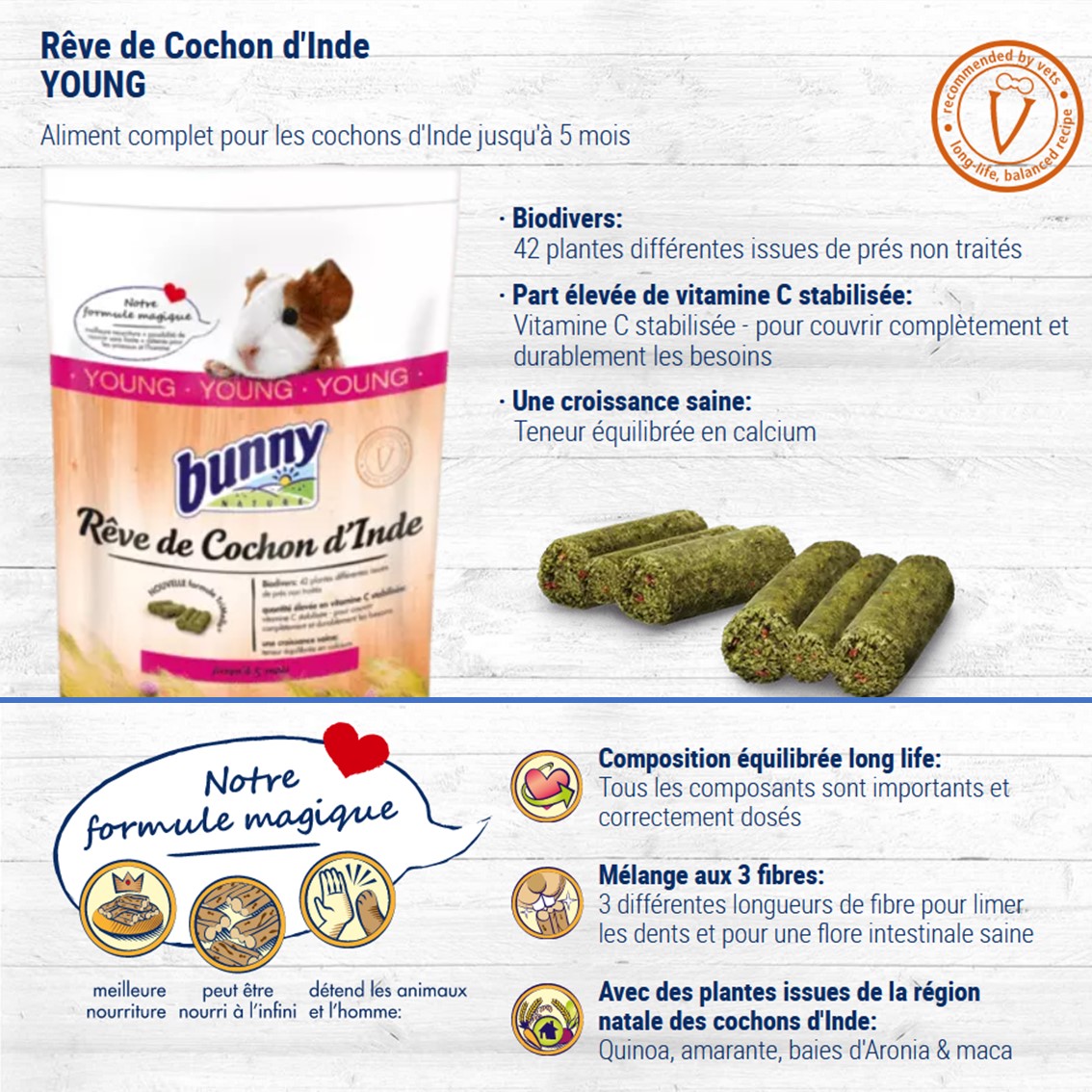Aliment sain, complet et équilibré pour les cochons d'inde jusqu'à 5 mois